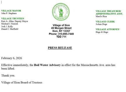 Click Here to view the notice on the Village of Ilion Election date for 2026.