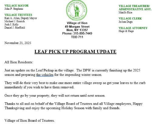 Click Here to view VILLAGE OF ILION SOLID WASTE/TRASH/RECYCLING/GREEN WASTE GUIDELINES - EFFECTIVE 09/01/25.